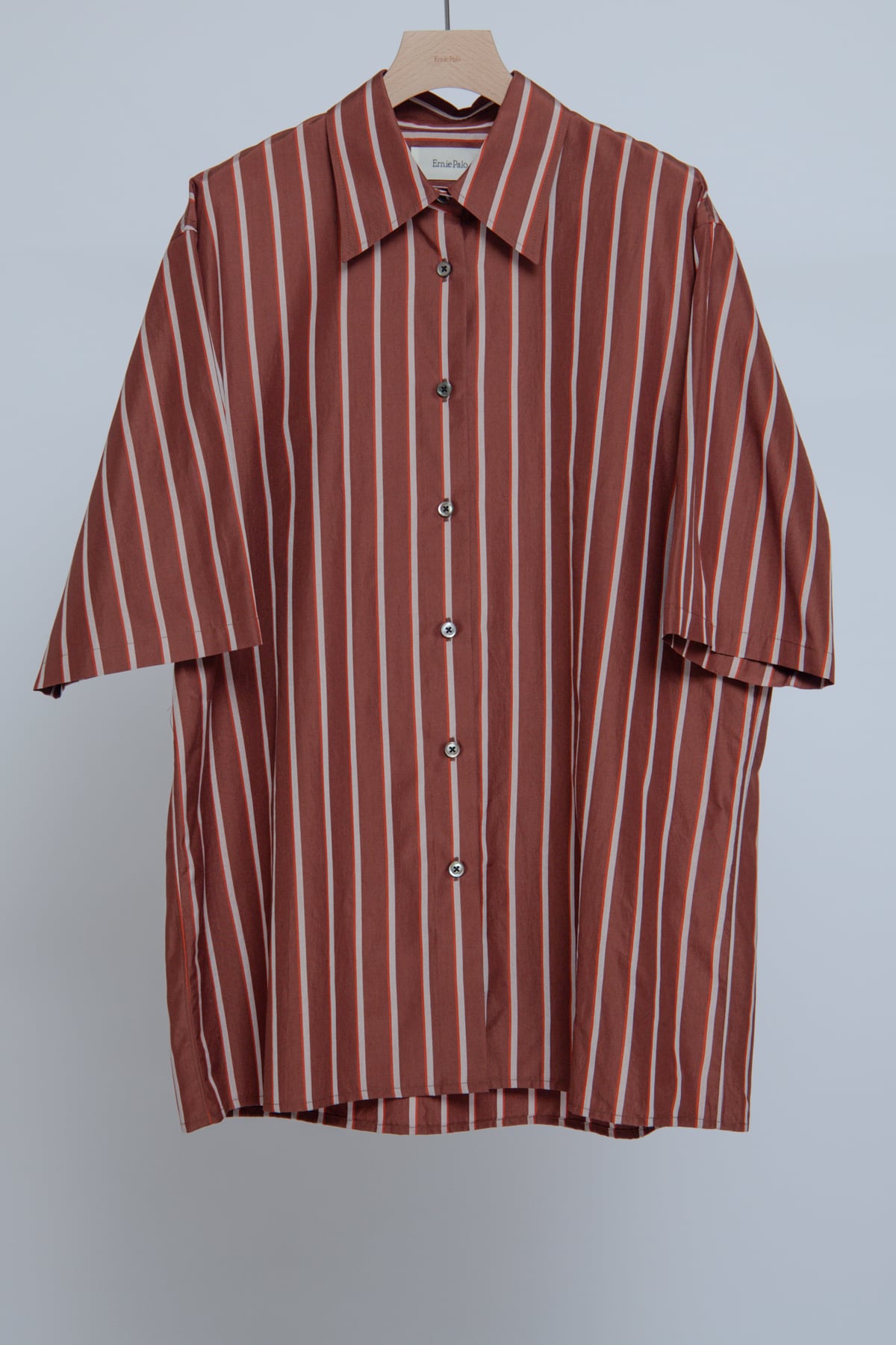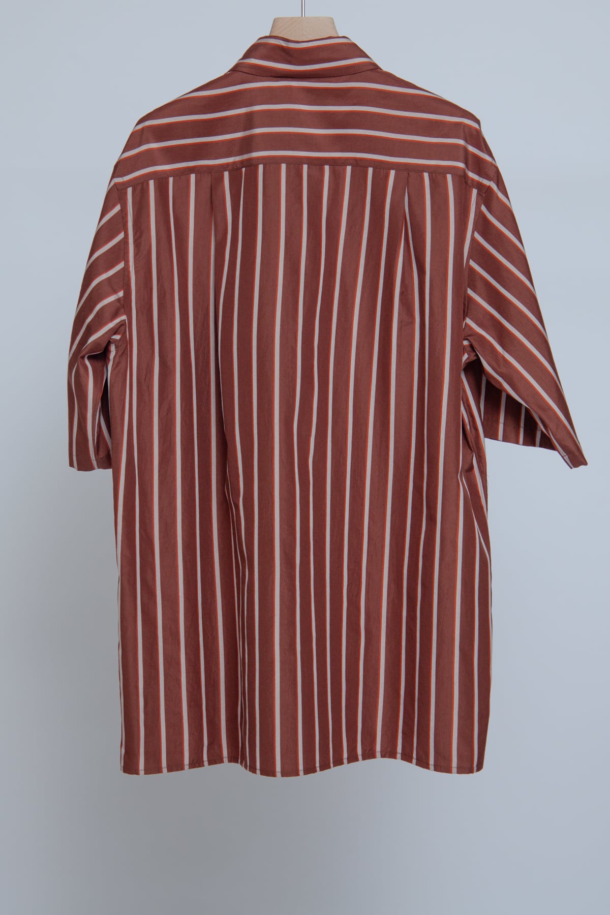 Silk Cotton Stripe Half Sleeve Shirt - Brown