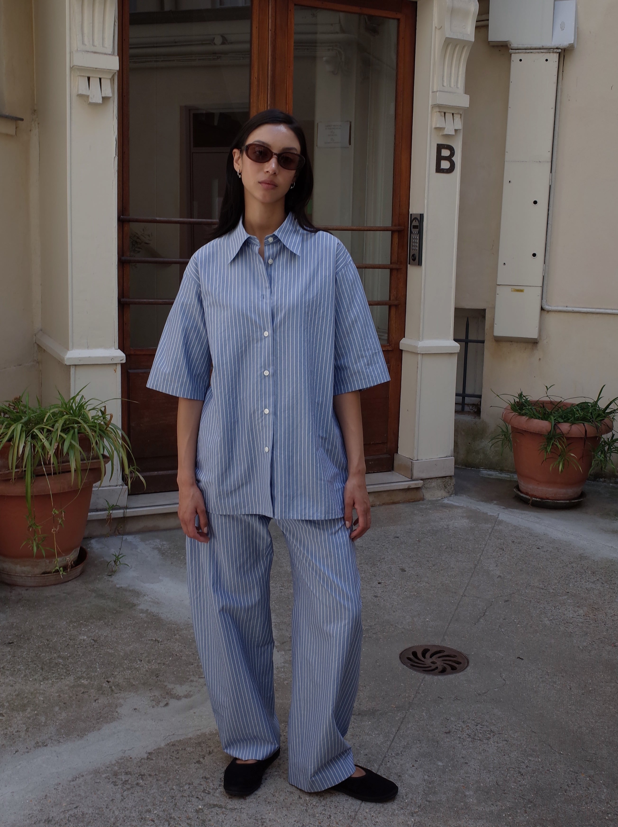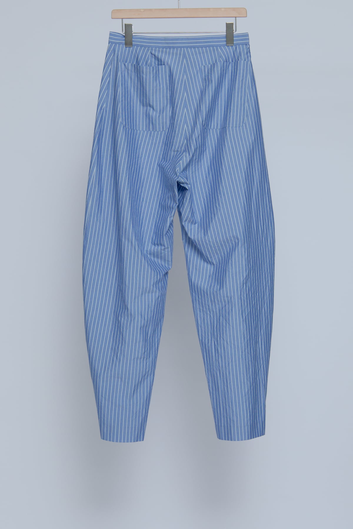 Silk Cotton Stripe Easy Curve Pants - Sax